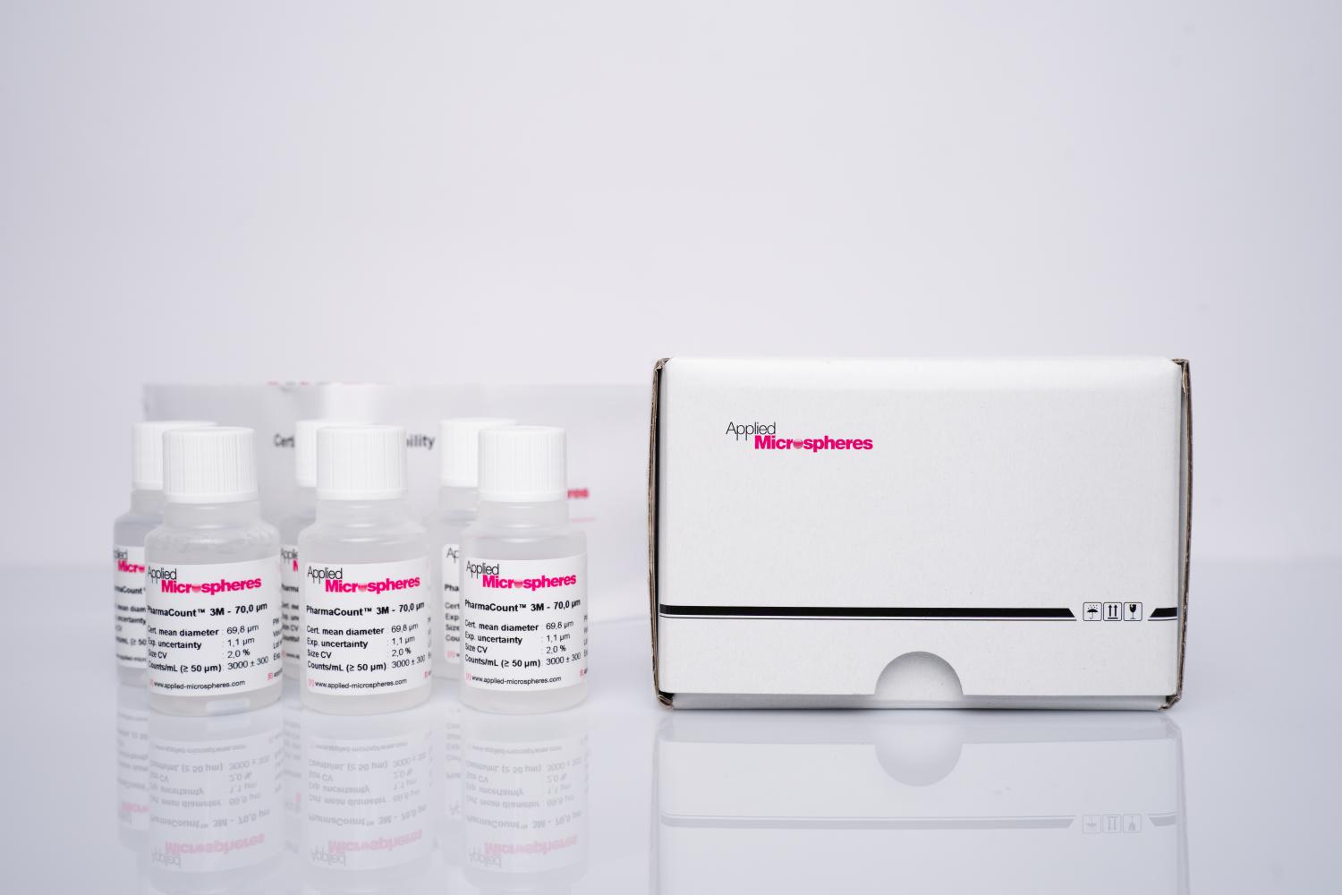 The PharmaCount™ series by Applied Microspheres product line consists of polystyrene particle suspensions with precisely defined numbers of particles. It is designed for pharmaceutical quality control laboratories to facilitate calibration and validation processes for liquid particle counters. PharmaCount™ series are not suitable for replacing the official standards supplied by the US, Japanese, or Korean Pharmacopeia organisations, but the products mimic the specifications to a particle standard as defined in the pharmaceutical standards. As such, they are ideally suited to perform regular tests to ensure compliancy of the analytical instruments applied in GMP environments. PharmaCount™ products consist of particle size standards traceable to the International System of Units (SI). The Certificates of Traceability supplied with each product meet requirements of GMP-compliant records of instrument validations.