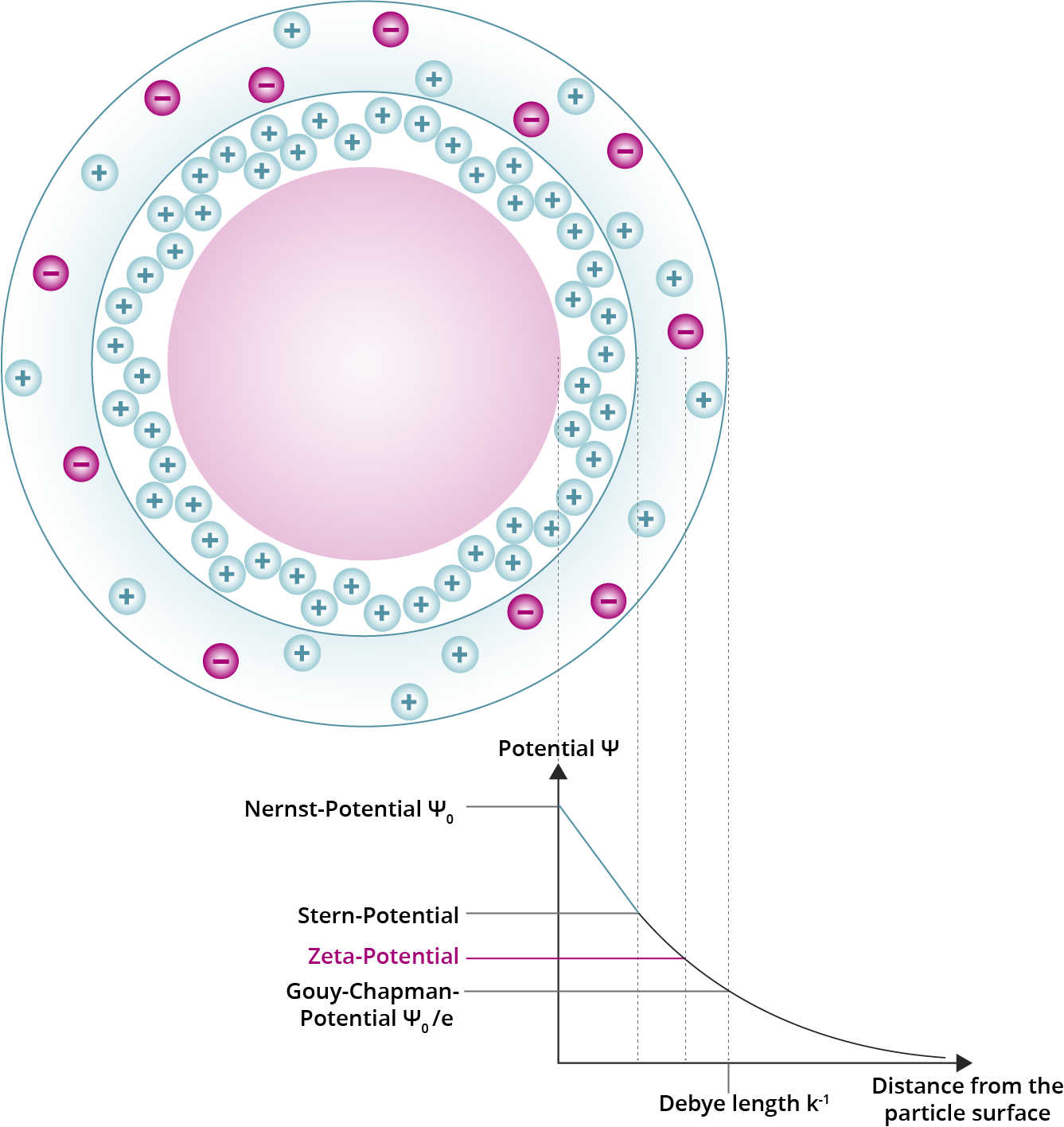 Basically, the Zeta potential influences all colloidal interaction. This potential is the most commonly investigated, primary measure to establish the properties of a colloidal surface. This is due to relatively simple experimental accessibility of the Zeta potential. Despite the central role of the Zeta potential in colloidal science and the existence of many experimental setups to ascertain it, the results need to be carefully interpreted due to the physical definition of the value. Basic properties of the surrounding medium, such as the pH value and ionic strength, greatly affect the Zeta potential. Different methods of determining the Zeta potential also cause varying high values for a negative zeta potential with enhanced reproducibility no background noise due to absence of charged surfactants easy application of ready-to-use prefilled syringes long shelf life at room temperature particle accelerations by external forces. They lead to varying forces acting on the electric double layer surrounding the particle. Independent of the method, a reliable and stable Zeta potential control to define this measure is thus essential for the reasonable interpretation of experimental results.